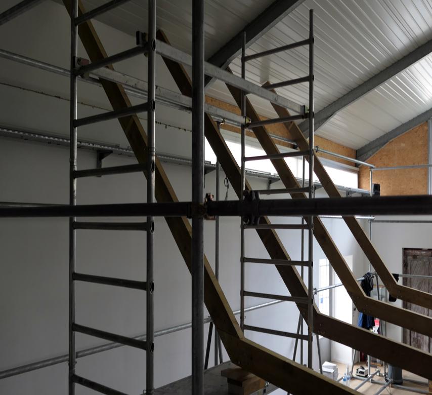 Une des particularités des Salaisons était son ouverture sur la rue car il n’y avait pas de porte : c’était un rideau de fer qui était soit levé, soit baissé, ce qui permettait aux promeneurs d’apercevoir les œuvres. J’espérais, en opérant ainsi, motiver la Mairie de Romainville à soutenir les Salaisons ; ce qui n’est pas arrivé, bien au contraire. Hidéo Morié prit place dans la première salle qui donnait sur l’extérieur quatre semaines avant le début de l’exposition. Et c’est dans la froidure du lieu, puisque censé conserver la viande, qu’Hidéo Morié travaillait à mettre en place son second projet. Il avait placé dès l’entrée un grand mur en bois noir qui cachait tout ce qui aurait pu être visible de l’extérieur, ce qui rendait caduques mes volontés de visibilité d’œuvre, c’est donc plus par curiosité sur l’avancée des travaux de réhabilitation du lieu que les passants, parfois des architectes ou ébénistes du coin, venaient nous voir.