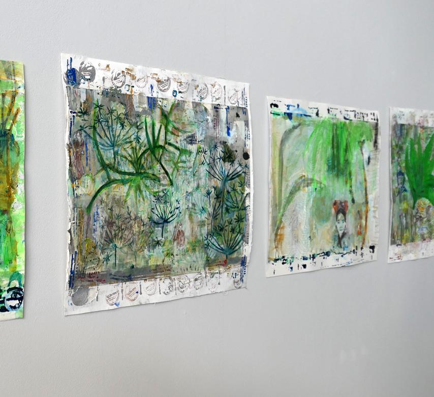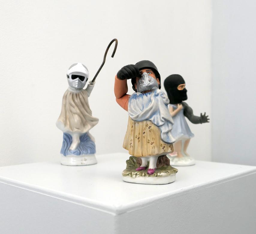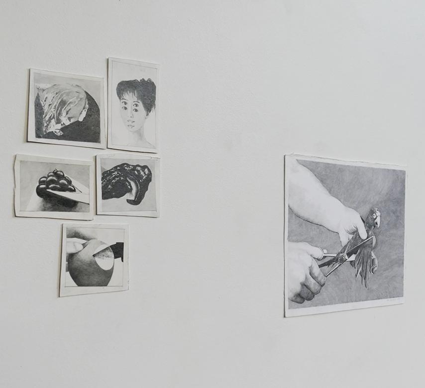 Les derniers travaux de Marilena Aligizaki sont liées à ses recherches de doctorante à l’Université des Beaux-Arts d’Athènes et constituent l’évolution des questionnements que l’artiste a abordé en 2015 sur les différentes dimensions que peut avoir le sport dans la société. A travers une série d’entretiens et de documentaires réalisés par elle-même, l’artiste interroge la pratique du sport collectif par les minorités migratoires et le caractère sexué de certains types de sports en Grèce. Panagiotis Kefalas s’inspire de son temps, ses souvenirs, son environnement, mais aussi de la peinture elle-même. L’ensemble de son travail se présente sous la forme de peintures à l'huile de petit format sur toile et bois. Les images qu’il crée proviennent d'un large éventail d'archives personnelles. Ce protocole sert d'outil de désorientation pour s’éloigner du document original afin d'en créer un nouveau, libre de la source première et prêt à être peint après un processus de transformation interne. Son objectif est de créer un monde personnel où chaque pièce est un fragment narratif d'un tout en constante évolution.  Efsevia Michailidou travaille l’univers des symboles (sel – catharsis, mousse – évolution, renaissance, fleurs de camomille – guérison, fleurs séchées – mort, coton - innocence) dérivé de processus internes et de mécanismes émotionnels. Dans ses œuvres, les formes empruntées à la nature apparaissent souvent semblables à des fossiles en forme d’utérus, nid, coquille ou racines ; comme une allusion à la recherche constante de l'identité et des origines. Son travail est axé sur l'exploration d'archétypes classiques, d'instincts primaires et de préoccupations existentielles (naissance, amour, mort, renaissance). Michailidou permet aux matériaux eux-mêmes de déterminer le résultat final à travers un processus alchimique. Aliki Palaska  appartient à une génération d'artistes qui composent l'art grec contemporain depuis les années 2000, qui a émergé aux côtés des « Young British Artists ». Dans son travail, elle s'exprime avec différents matériaux visibles sous forme d'installations. Ses références proviennent du domaine de la culture underground et de la philosophie rock et visent à contester les diktats politiques. Elle investit ce monde par l'imaginaire en sélectionnant des récits uniques qui sapent l'actualité et les images de la culture occidentale. Les recherches artistiques d’Alexandra Petranaki sont centrées à la fois sur la pensée philosophique et sur l’exploration des archives et des documents évoquant la mémoire personnelle ou collective. Ses œuvres, encadrant une volonté d’autoréflexion et de recherche identitaire, constituent des installations uniques en grand format et mélangent des sensations auditives et olfactives. Evi Roumani crée en utilisant le dessin et la vidéo comme support principal. Les images qu’elle utilise comme sources primaires proviennent d'une archive large et diversifiée. Le concept central de son travail trouve sa source dans le fait de placer une image hors de son contexte d'origine et de créer une métaphore qui permette au visiteur d'en explorer de nouveaux aspects. Ainsi, le document d’archive trouvé est recomposé vers une narration plus critique de sa version déjà connue. Giorgos Tserionis intègre différentes pratiques artistiques dans son travail qui se caractérise aussi par une variation des matériaux. De la céramique au collage, du dessin aux installations, Tserionis s’inspire des archives des photos et des textes qu’il collecte lors de ses recherches autour des notions du temps et de l’histoire investies d’un contenu idéologique et moral. Andreas Vousouras développe un travail qui se base sur l’utilisation des objets qu'il trouve dans ses pérégrinations urbaines ou des matériaux se rapportant à la mémoire personnelle ou collective qu’il transforme le plus souvent.