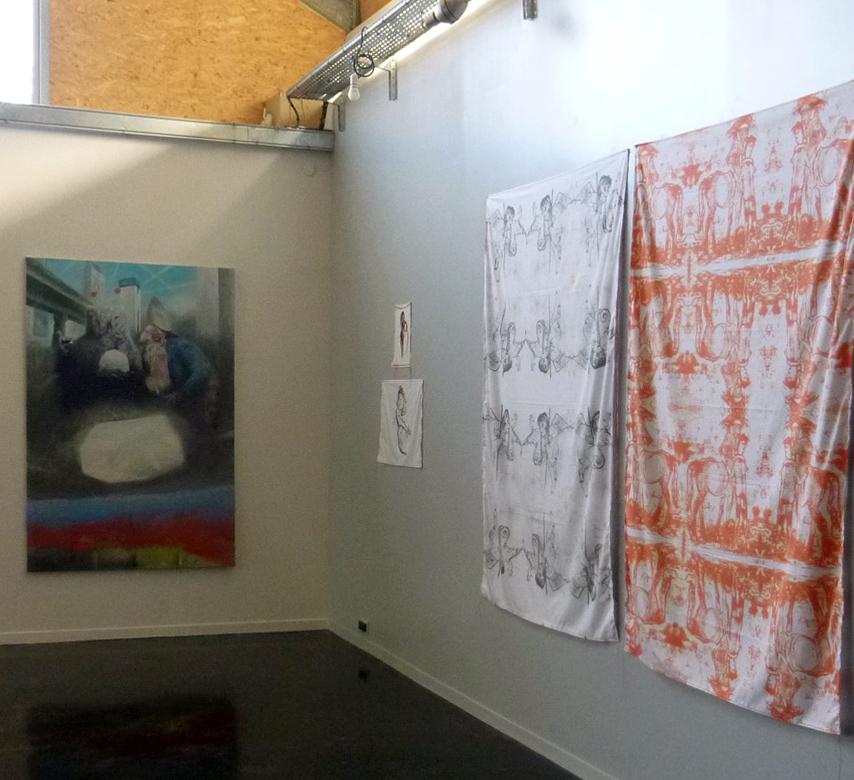 Restent pour Cendres Lavy et Benjamin Bruneau des œuvres sur toiles, tissus et papier, des dessins et des images à la charge émotionnelle intense. Que ce soit par leur matière ou leur format, chaque œuvre incarne sa construction subjective d’invention et d’expression visuelle en mobilisant l’imaginaire comme un propulseur. Dès lors, les sens des mots se voient comme ils s’étendent, le choix de l’onirisme entre en perspective.